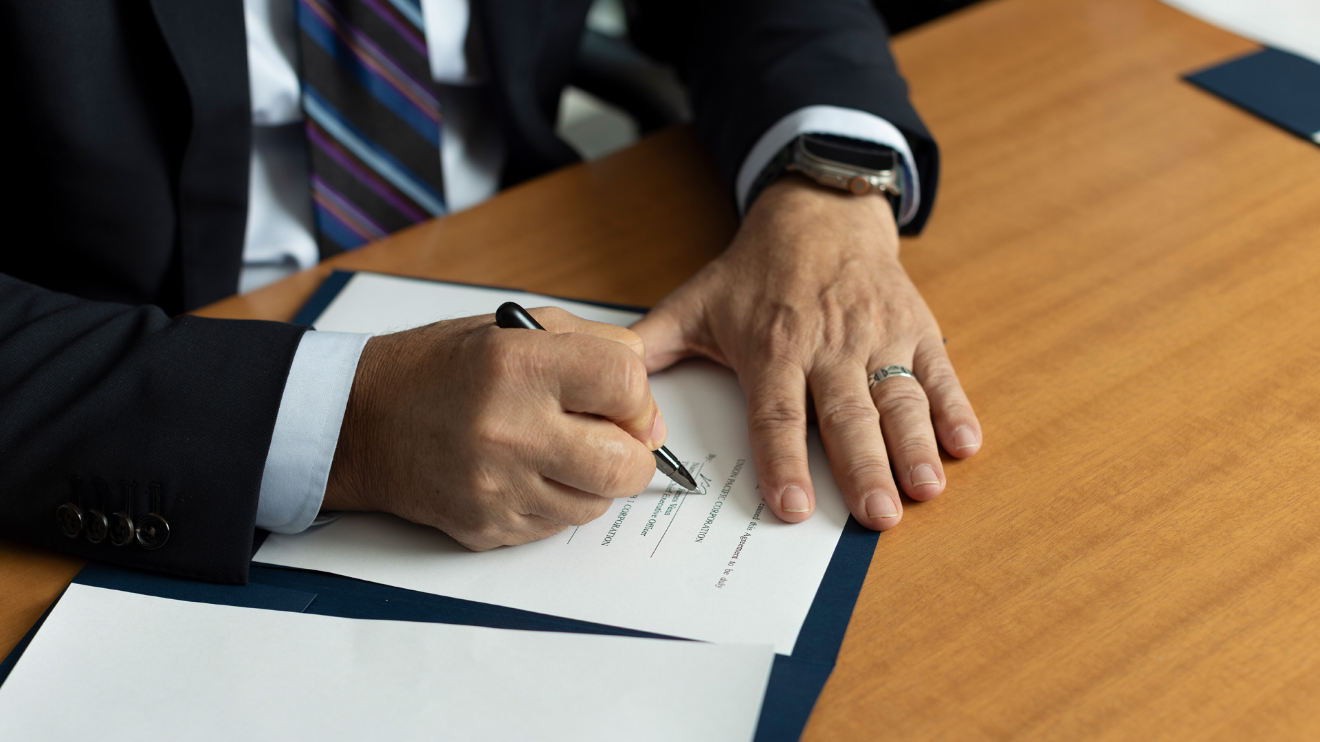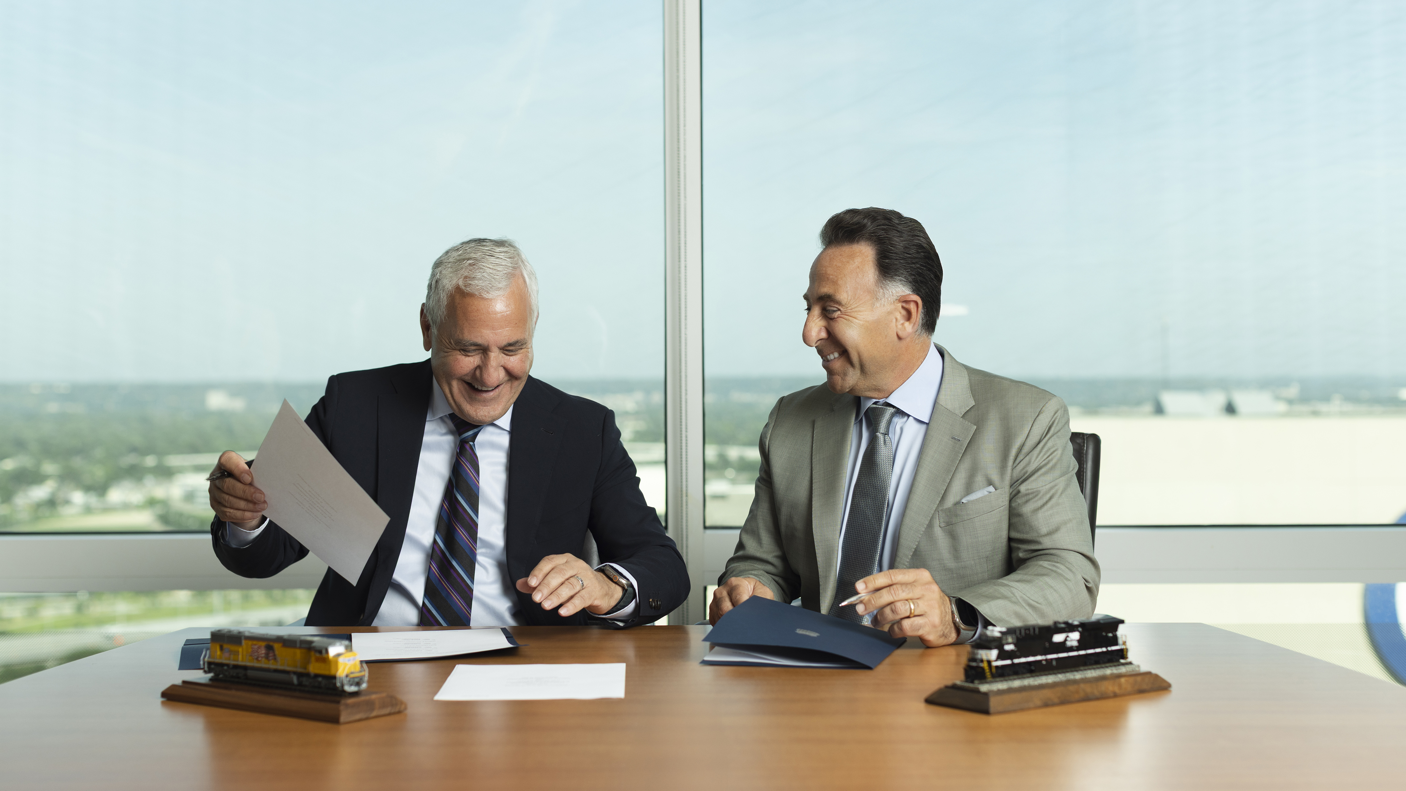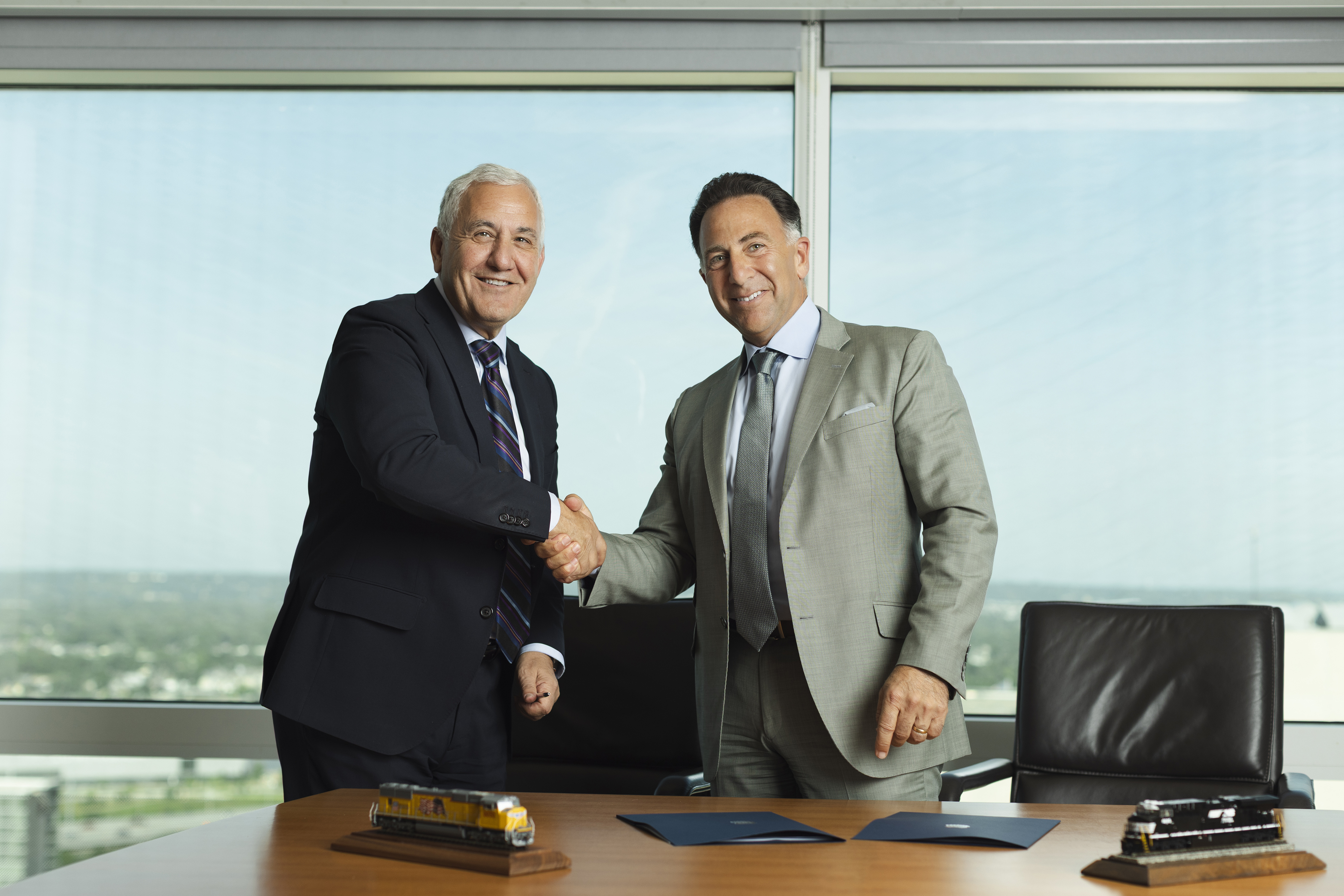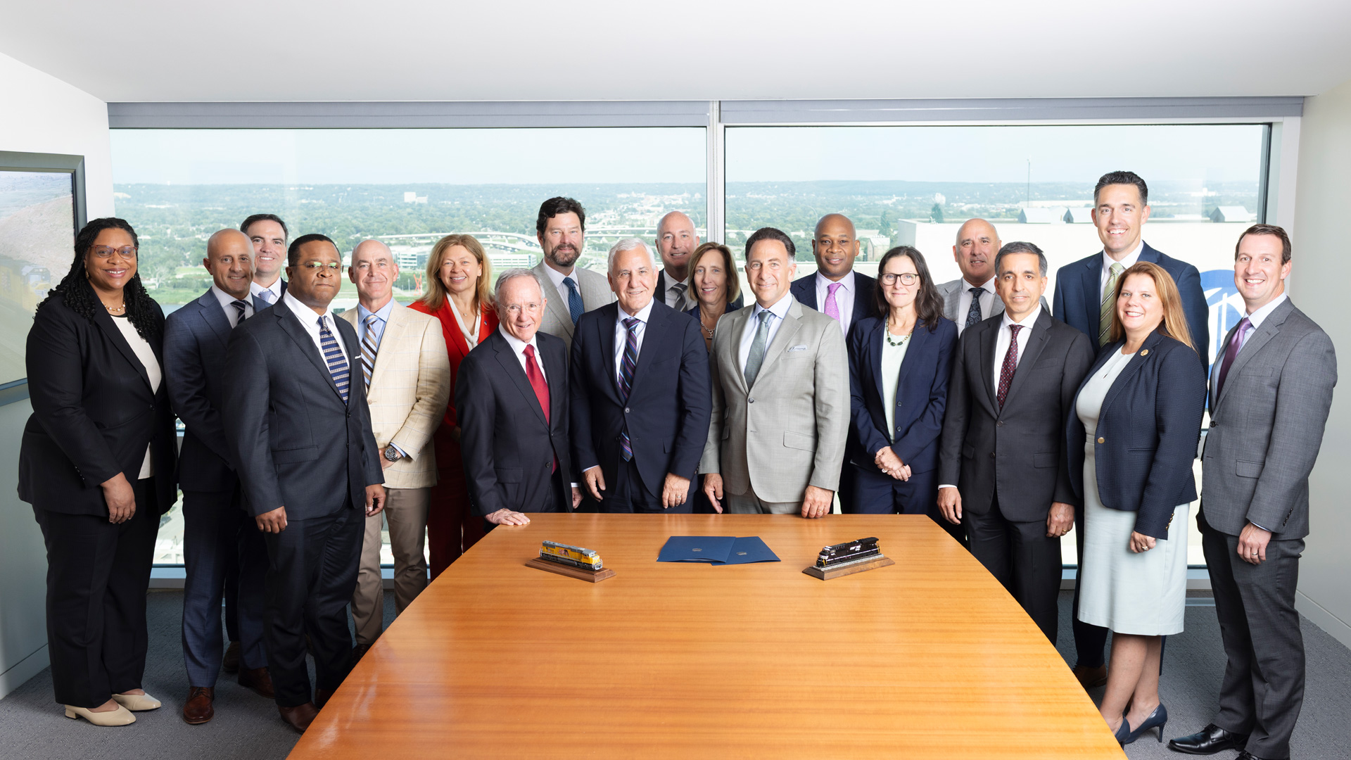 Union Pacific and Norfolk Southern leadership teams gather for a signing event at Union Pacific Center in Omaha, Nebraska. Approved for editorial and corporate reporting.